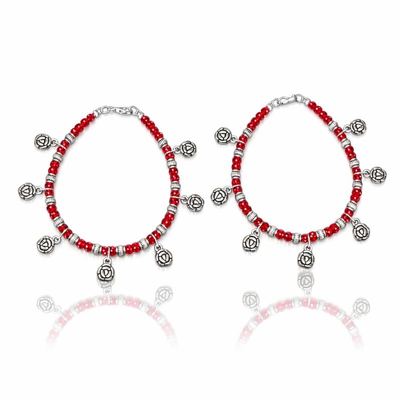 Gold-Plated Bracelet with Red Single AD Stone & Sparkling Floral AccentGold-Plated Bracelet with Red Single AD Stone & Sparkling Floral Accent