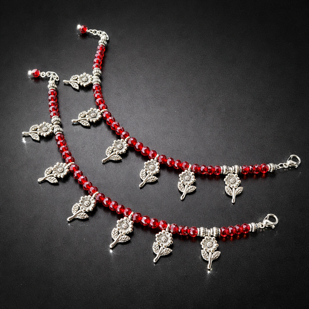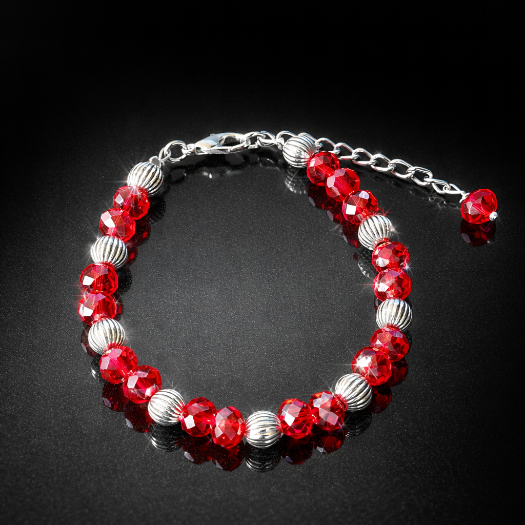 Gold-Plated Bracelet with Red Single AD Stone & Sparkling Floral Accent