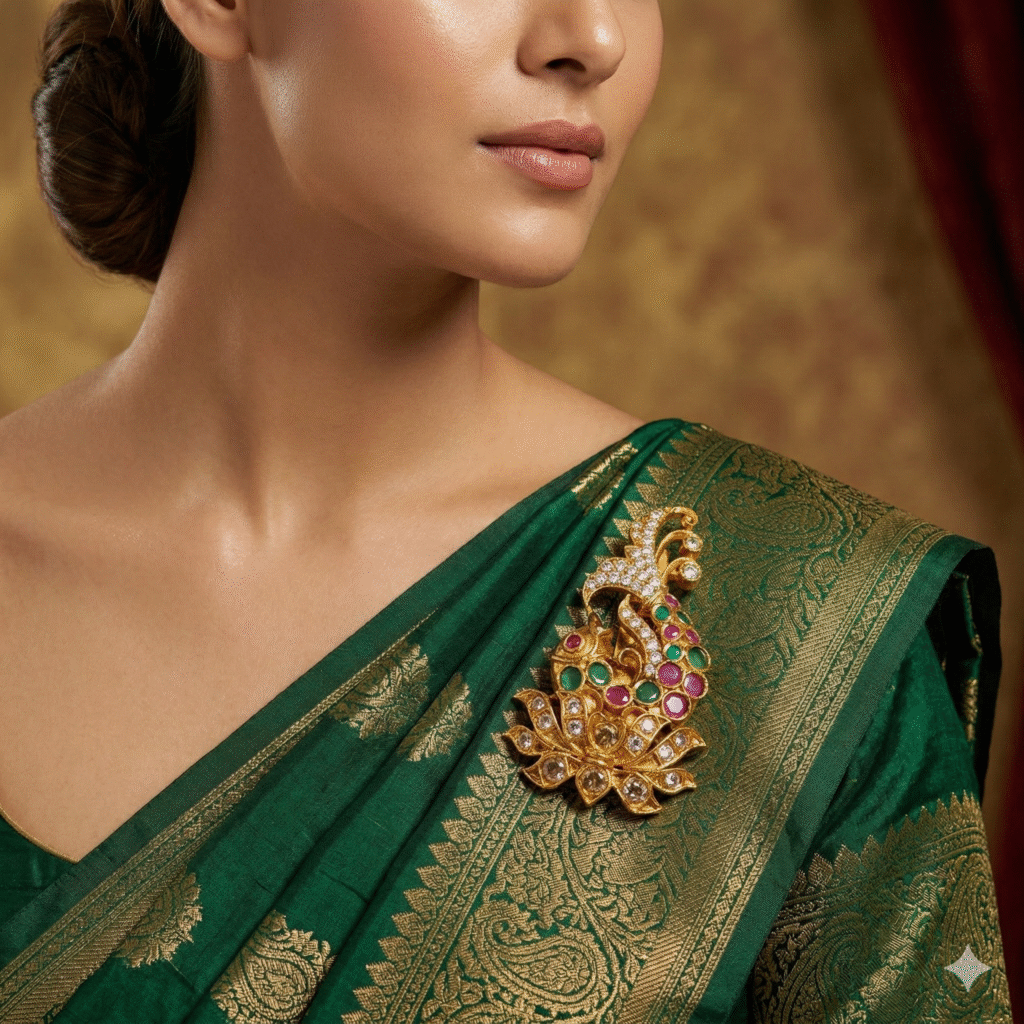 Jevaya Luxury Antique CZ Saree Pin (Brooch) Premium Hijab Pin