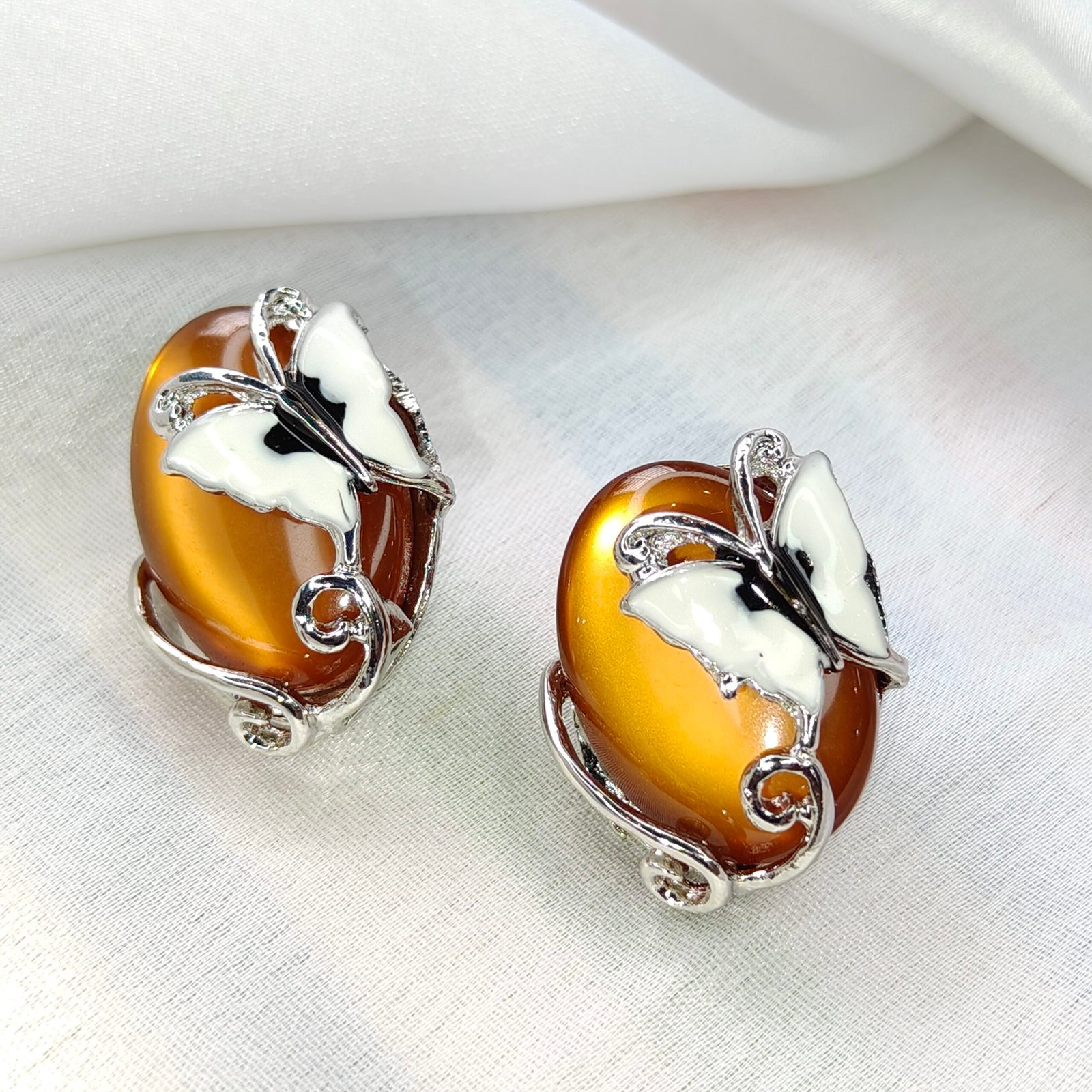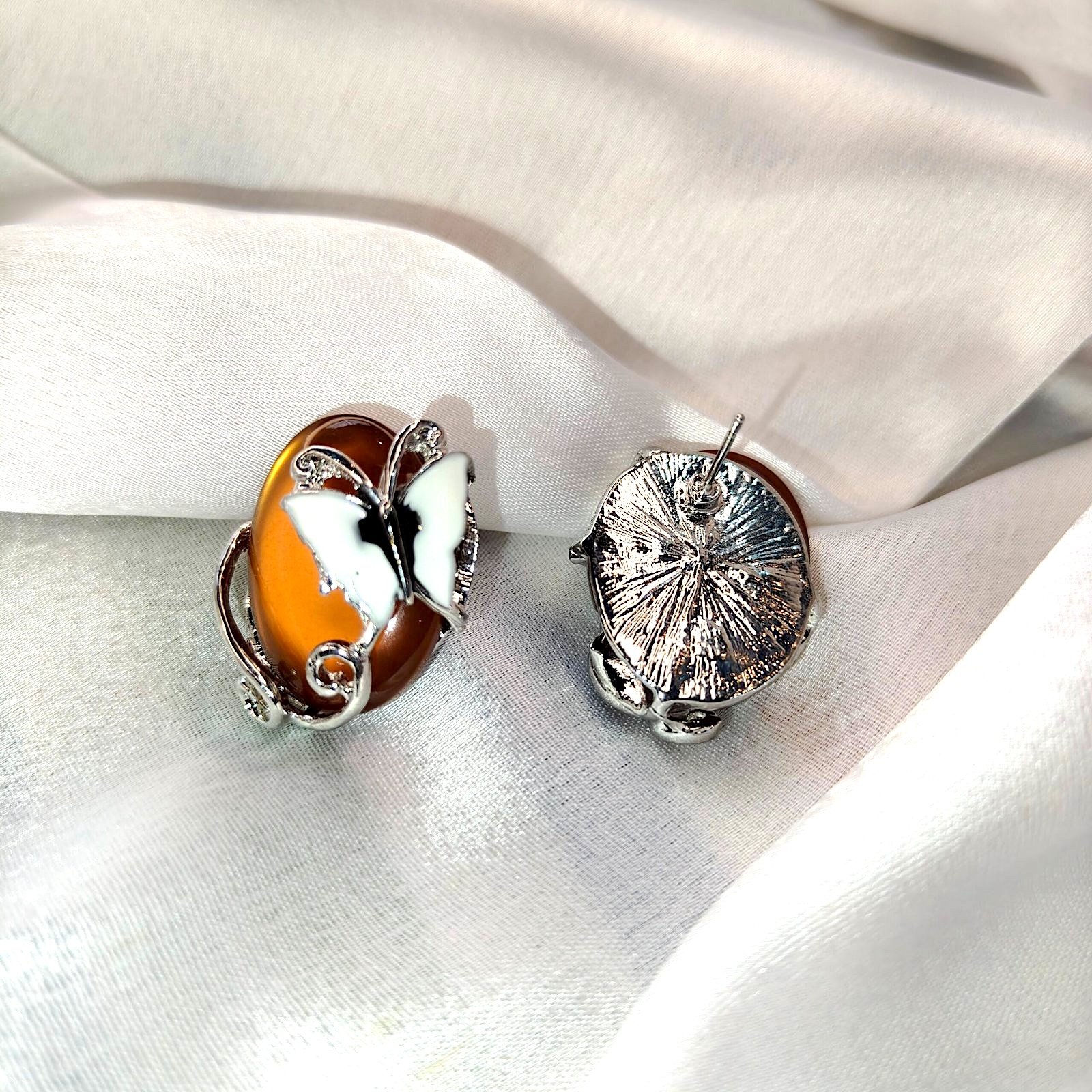 Elegant Butterfly Design Oval Stud Earrings – Golden Shine