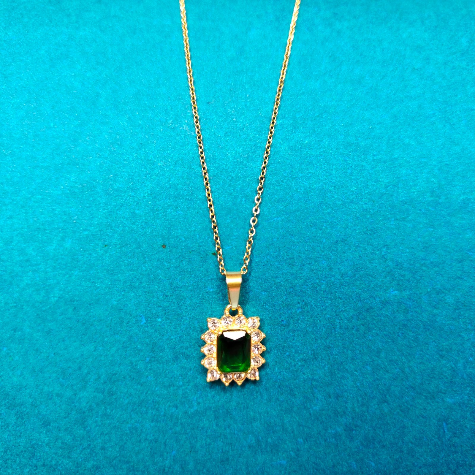 Jevaya Elegant 18K gold-plated Necklace with Emerald Green Crystal Pendant & CZ Halo – Anti-Tarnish Women’s Jewelry