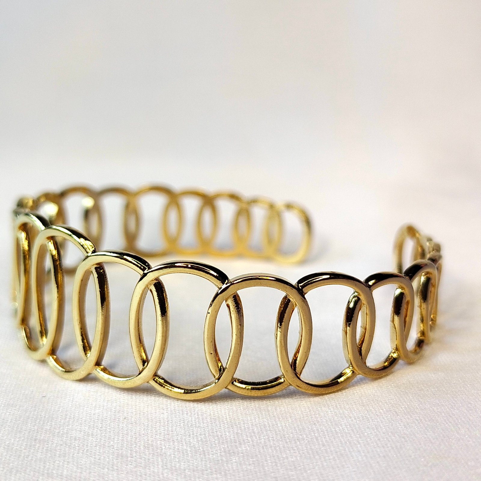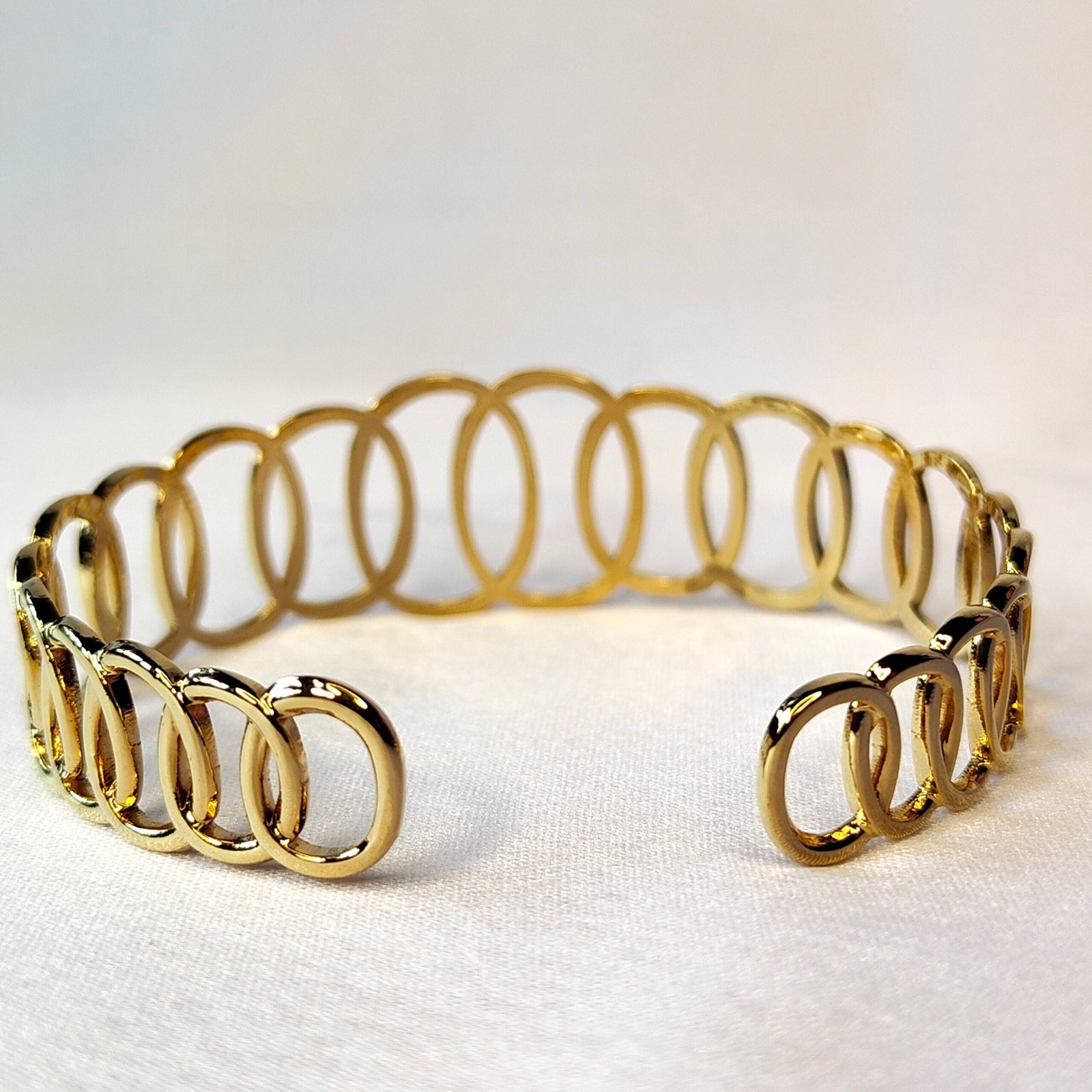 Jevaya 18K Gold Plated Ring-Link Cuff Bracelet for Women – Adjustable, Anti-Tarnish Stainless Steel, Minimalist Fashion Jewelry