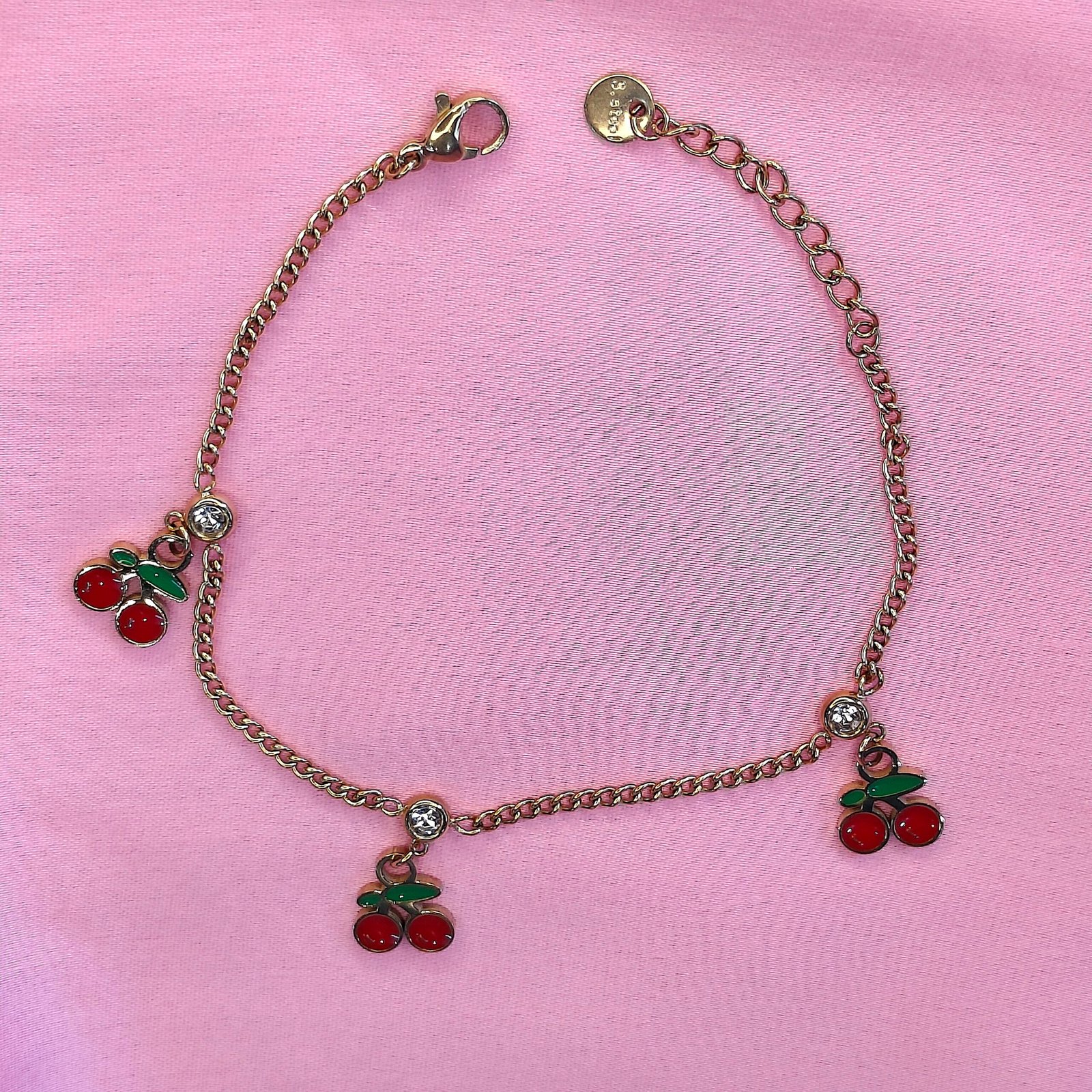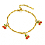 Jevaya Cherry Charm Gold-Plated Anti-Tarnish Bracelet with Cubic Zirconia Accents