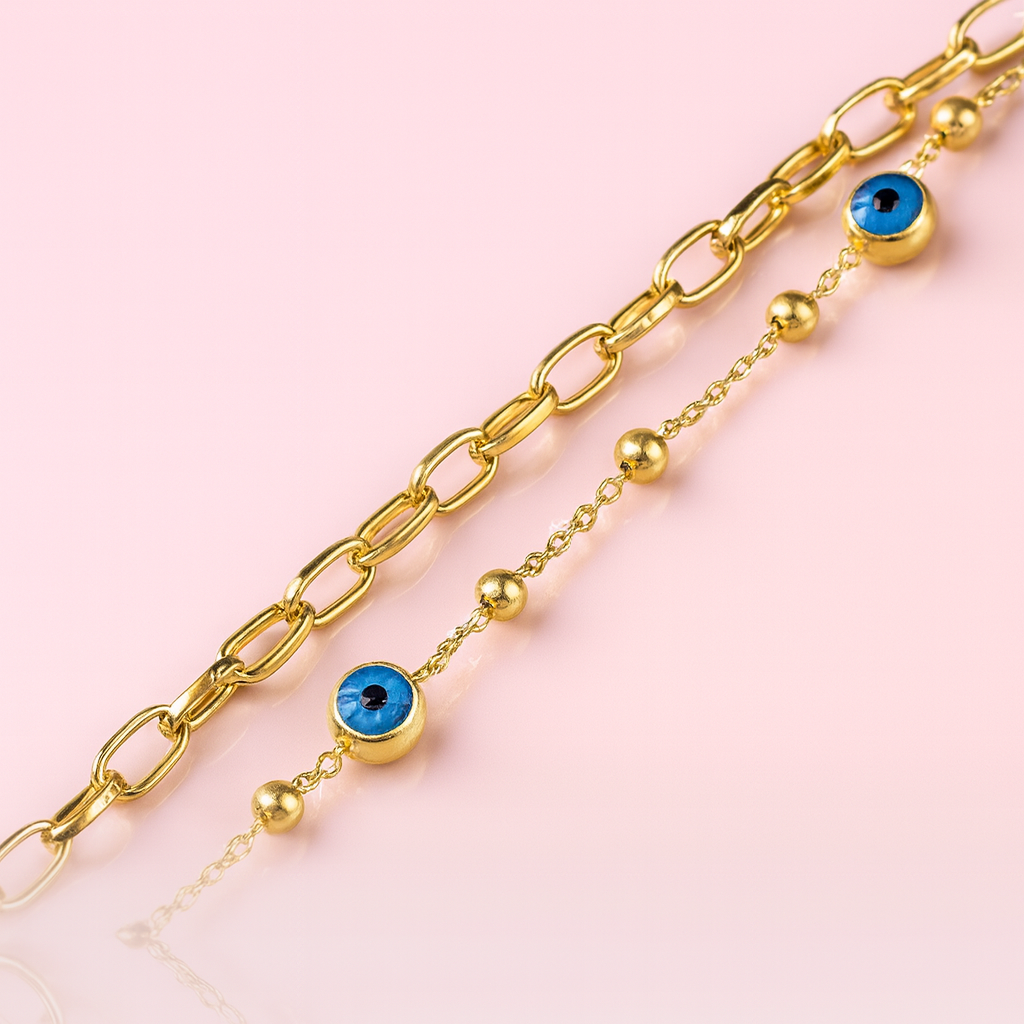 Jevaya Dual-Layer Gold-Plated Evil Eye Protection Anklet for Women