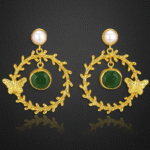 Jevaya Golden Butterfly Pearl Hoop Earrings with Green Stone Charm