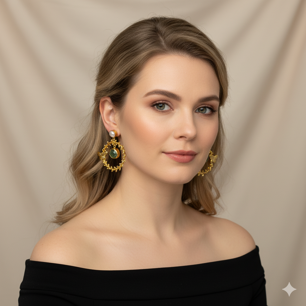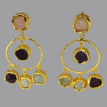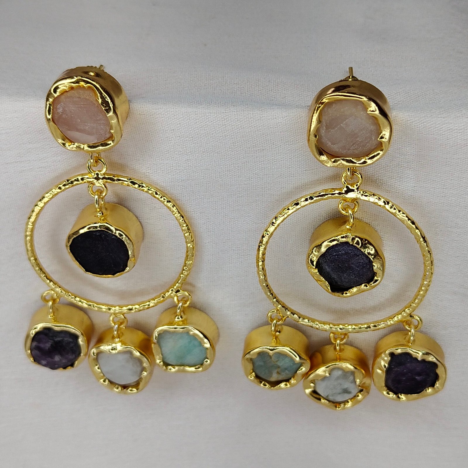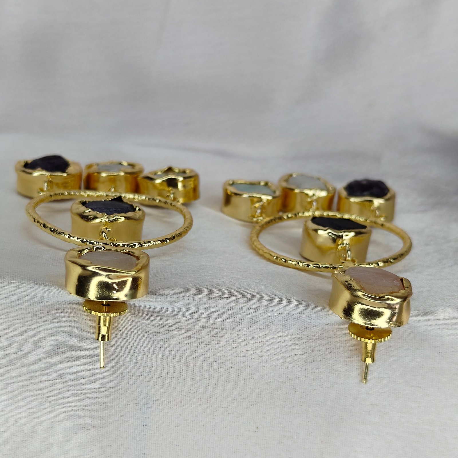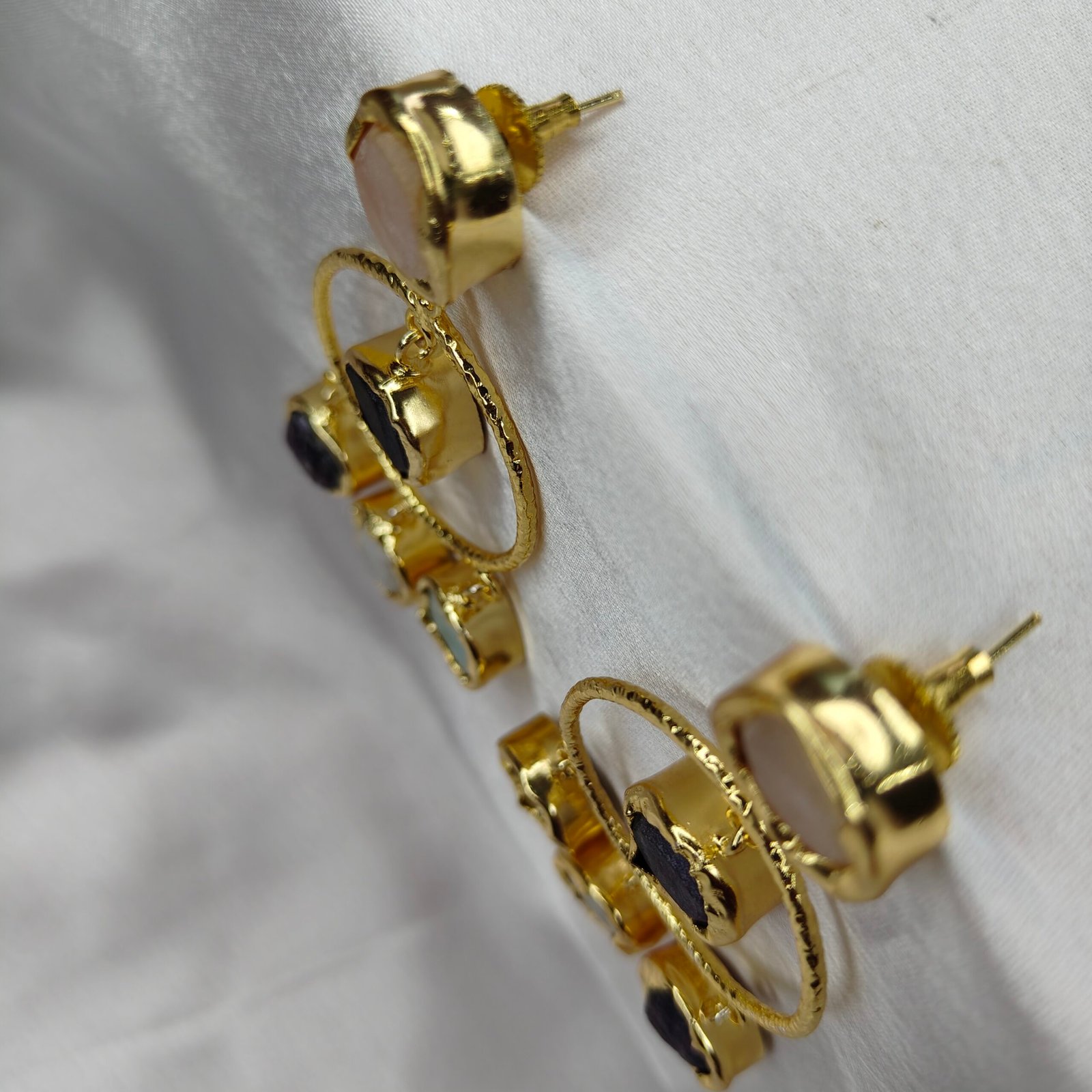 Jevaya Handcrafted Multiple Natural Stone Hoop Earrings with 22k Gold Polished