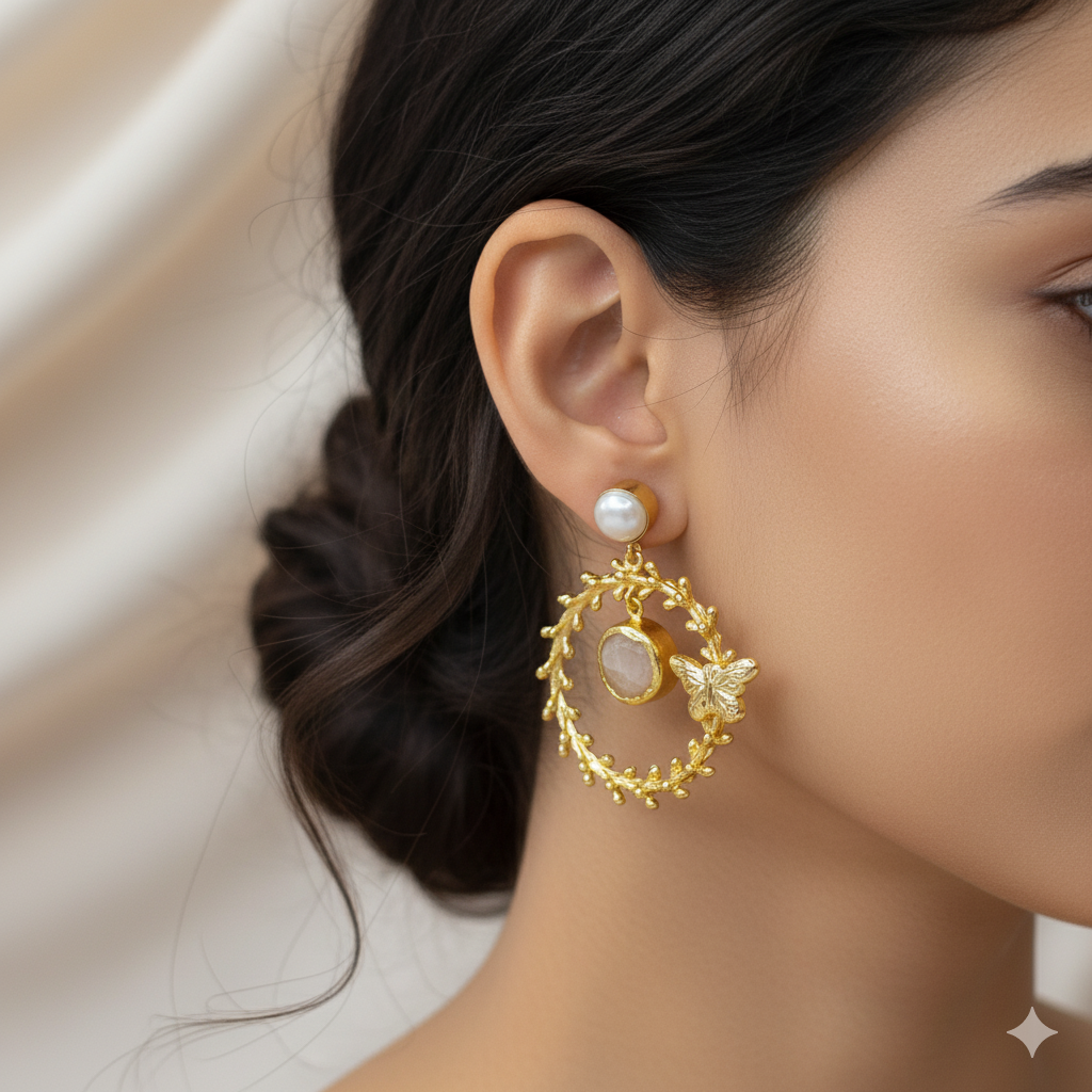 Jevaya Handcrafted Multiple Natural Stone Hoop Earrings with 22k Gold Polished