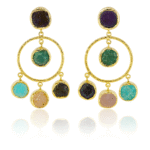 Jevaya Handcrafted Multiple Natural Stone Hoop Earrings with 22k Gold Polished