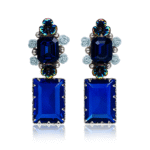 Jevaya Vintage Floral Drop Earrings with Rectangular Amber Stones
