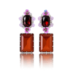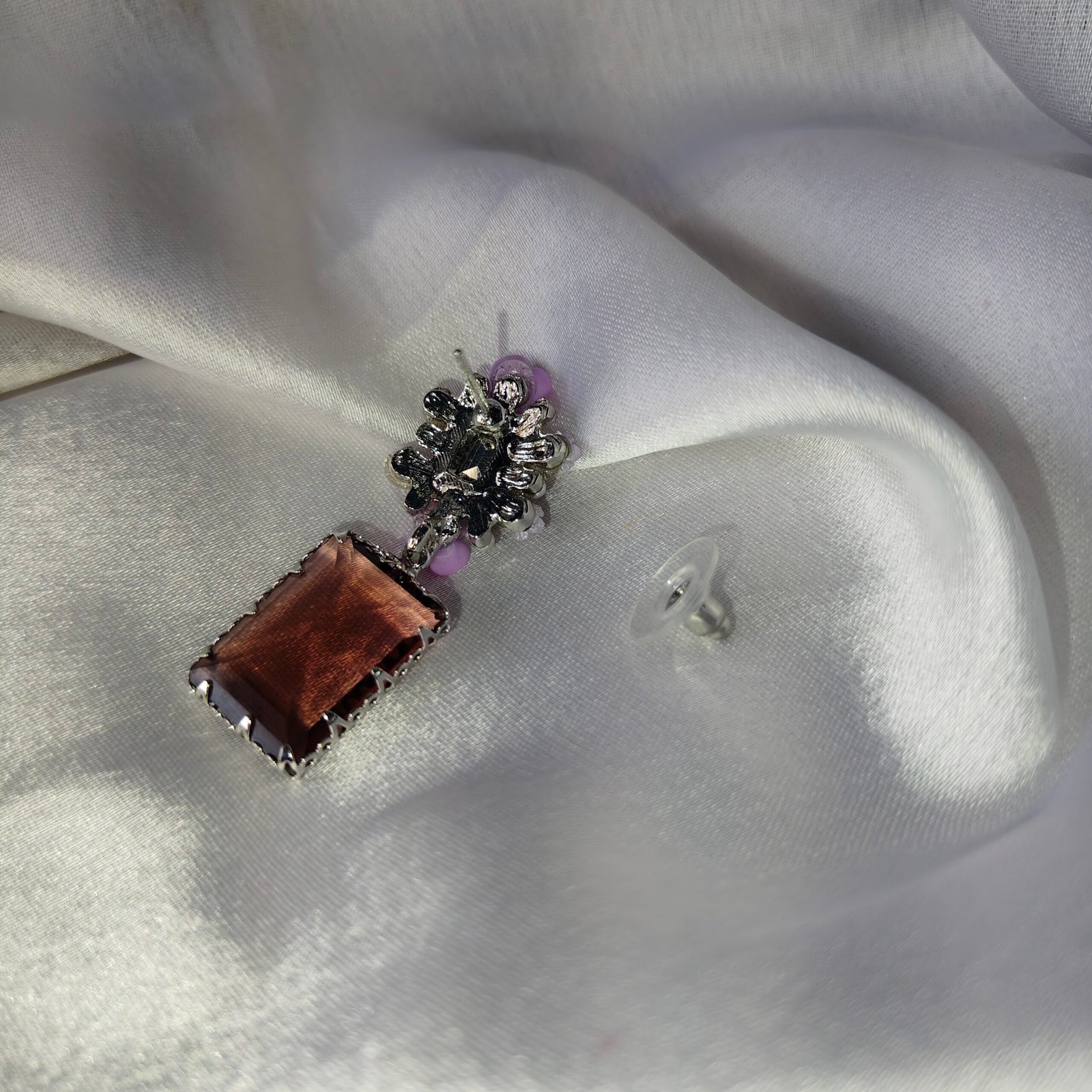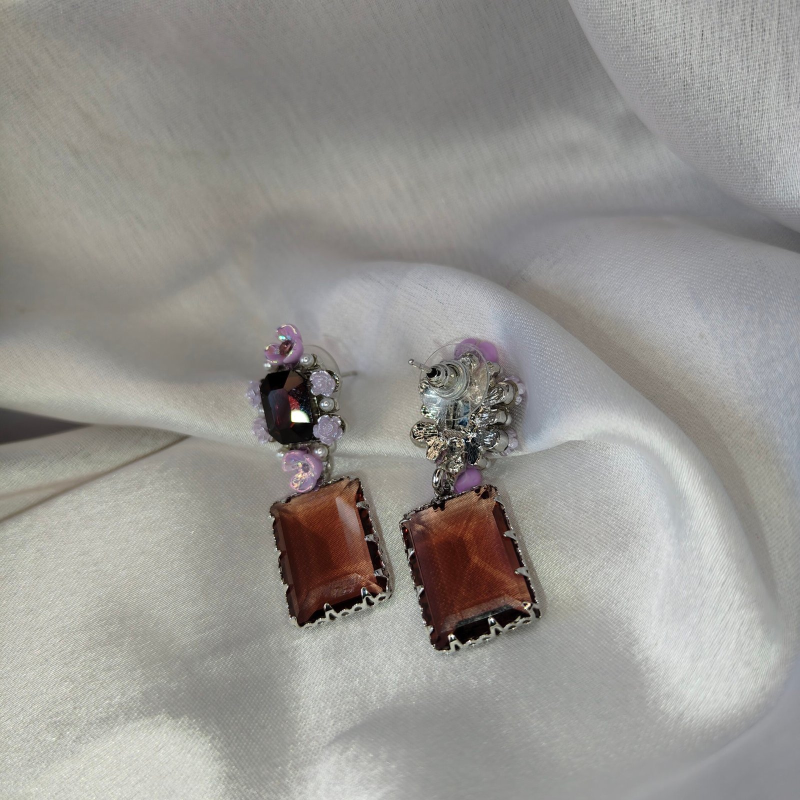 Jevaya Vintage Floral Drop Earrings with Rectangular Amber Stones