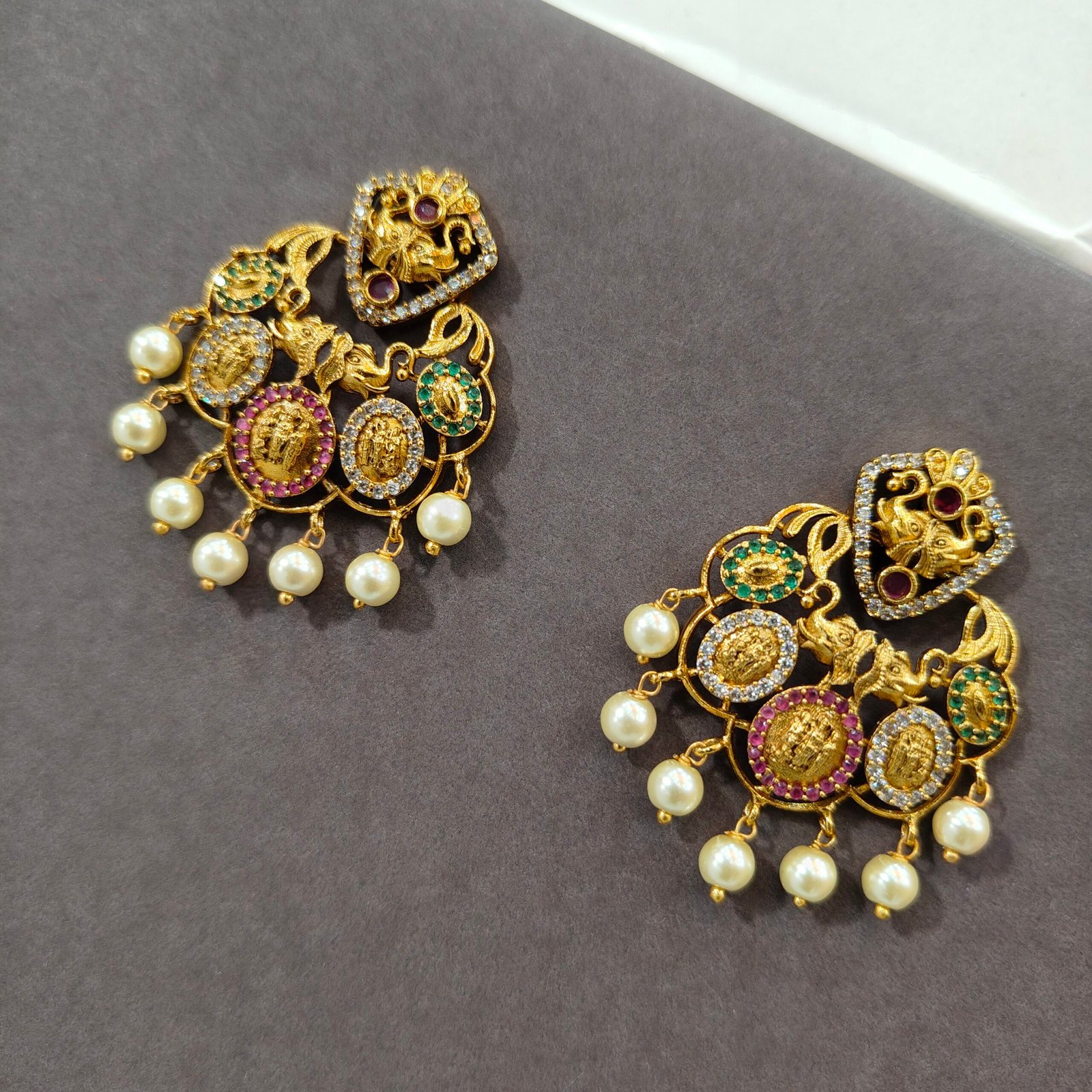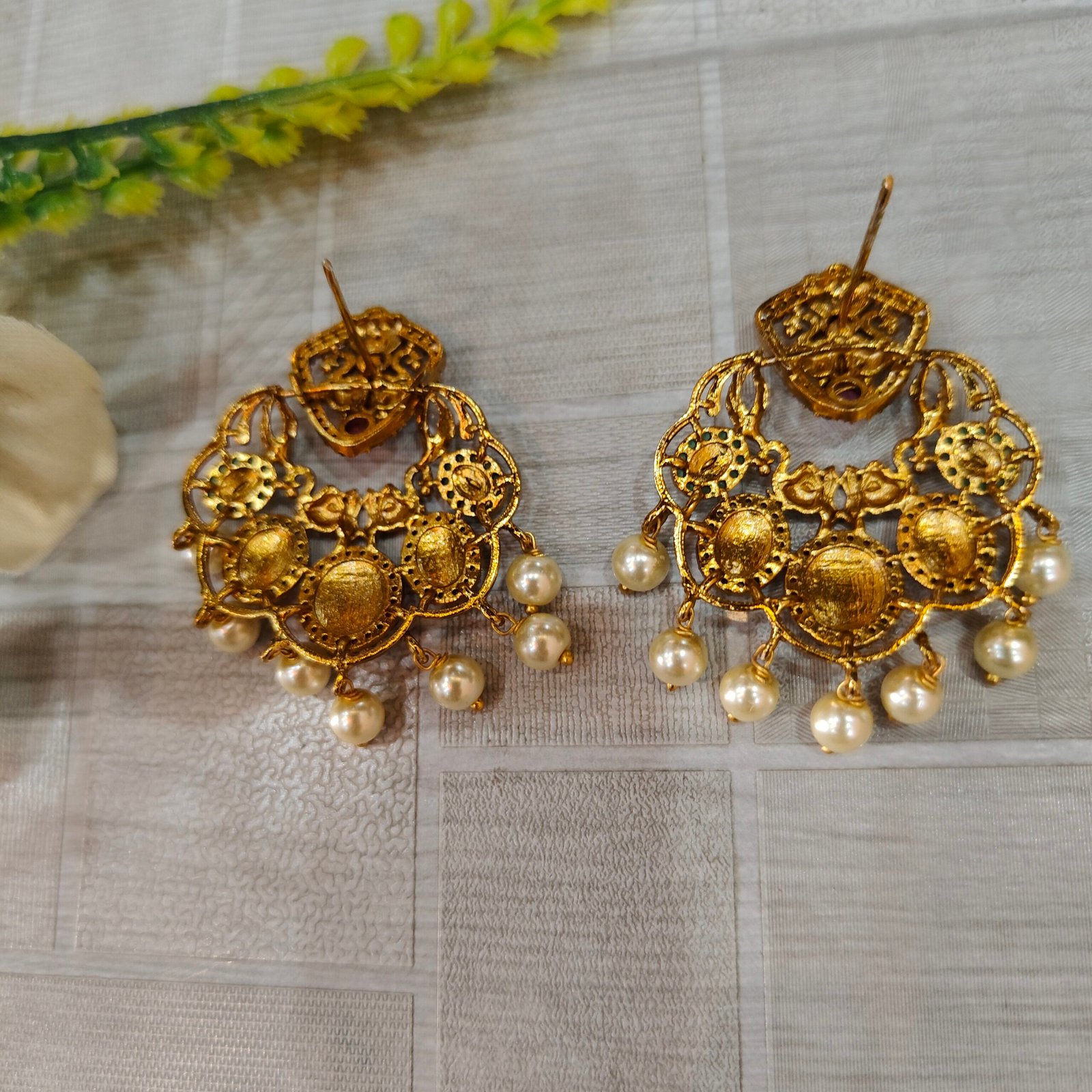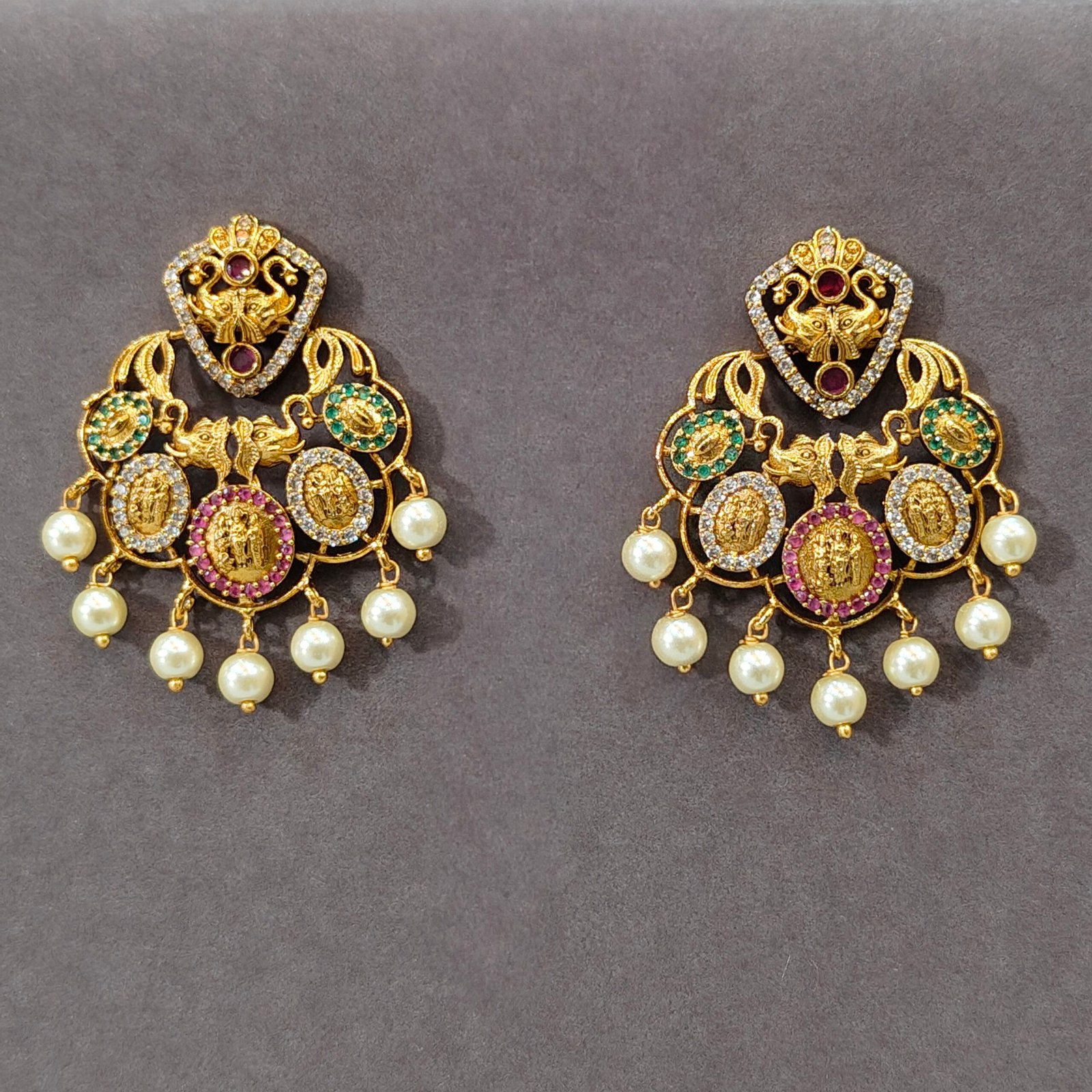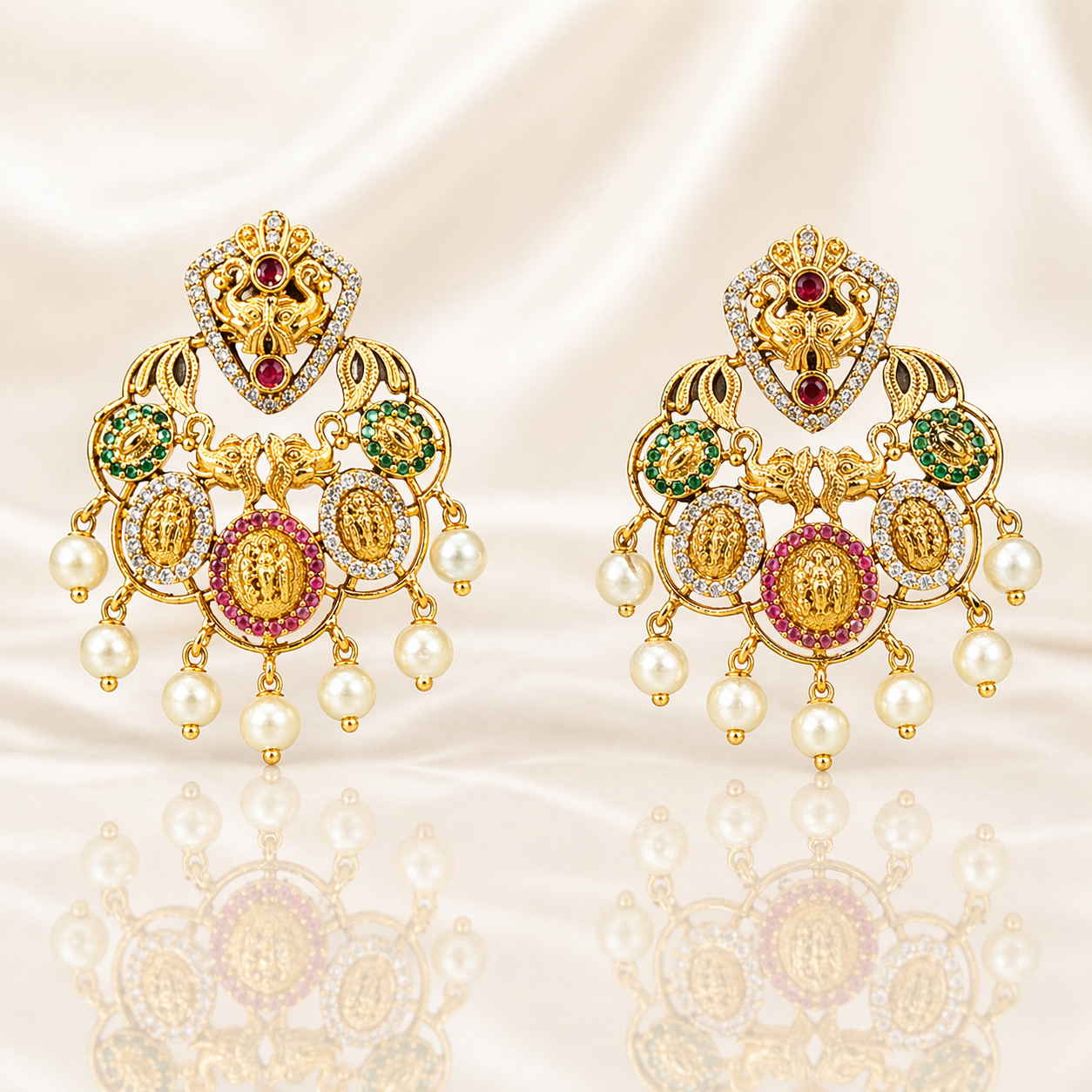 Royal Temple Chandbali Gold-Plated Pearl Earrings for Women | Lakshmi Designer Ethnic Statement Earrings