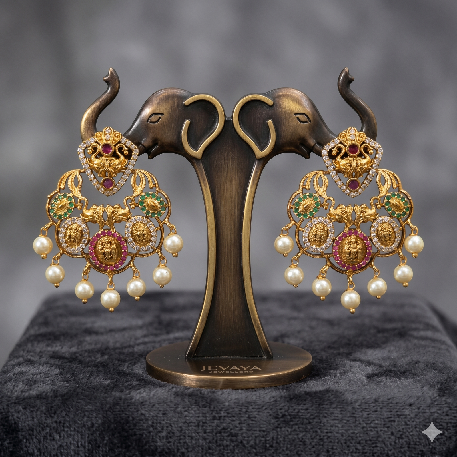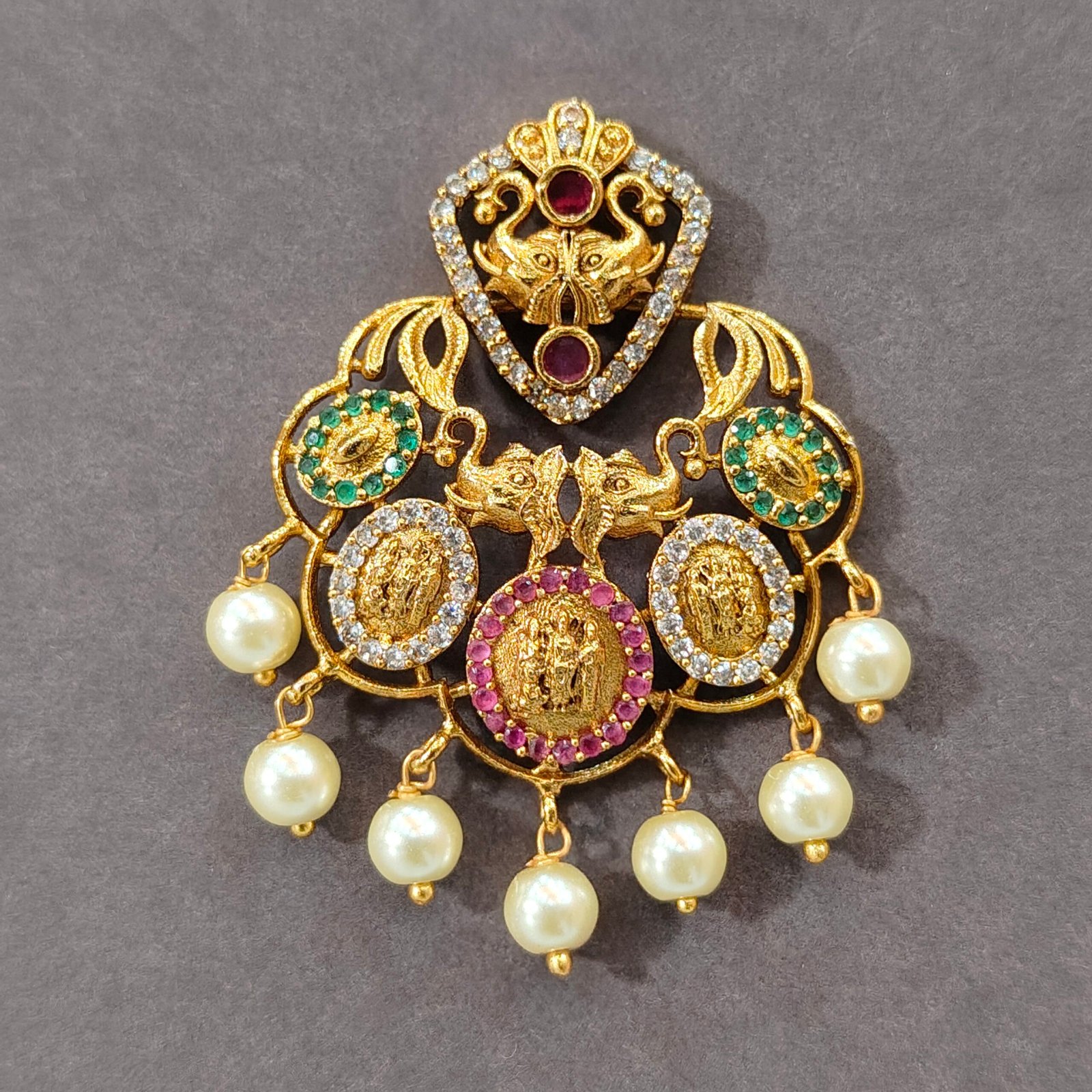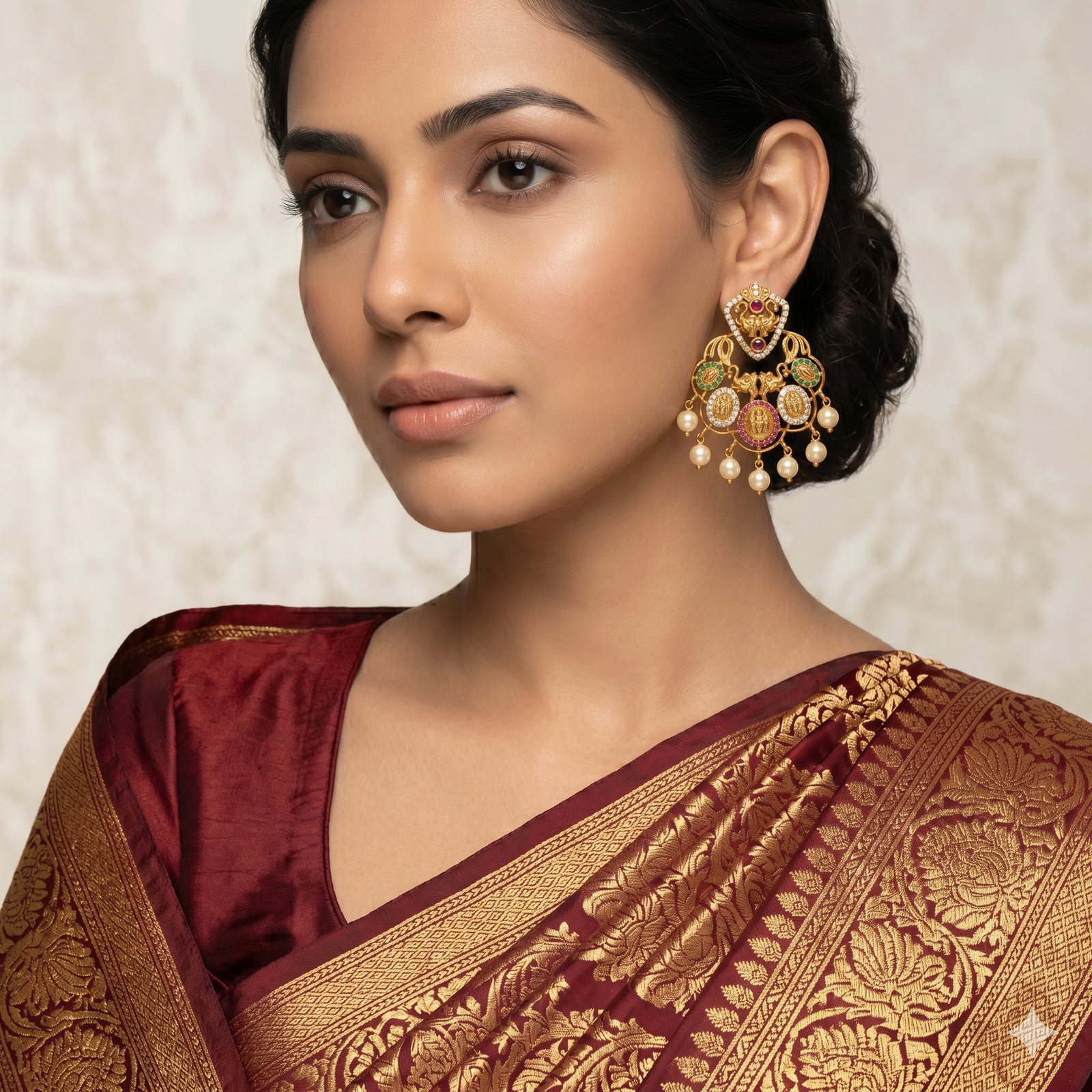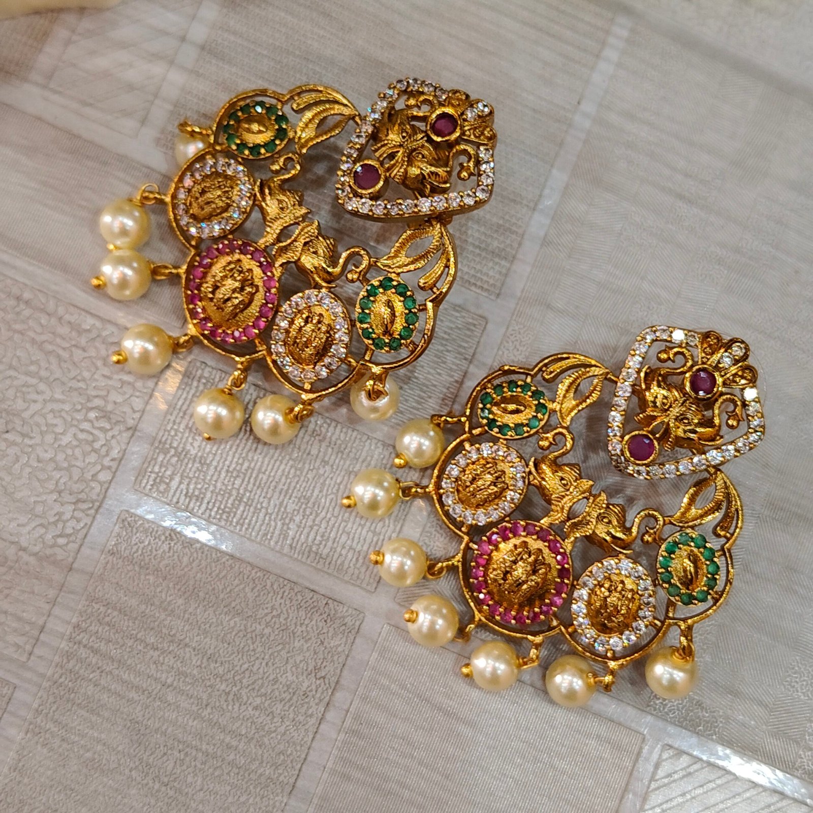Royal Temple Chandbali Gold-Plated Pearl Earrings for Women | Lakshmi Designer Ethnic Statement Earrings